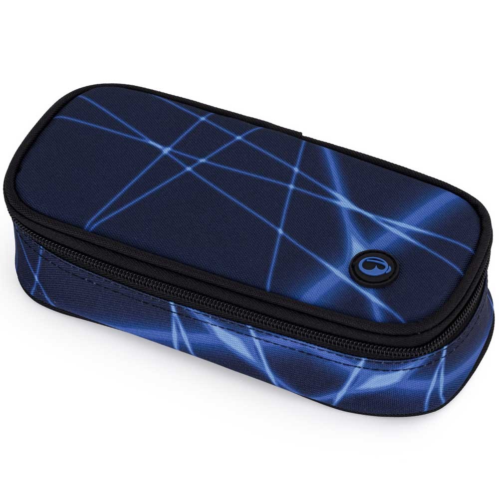 Uvnitř pouzdra je jedna vnitřní kapsička na zip a dvě menší kapsičky, pružné úchyty až na 20 tužek, propisek, fixů či pastelek. Pod klopou je volný prostor pro další psací potřeby. Pouzdro je uzavíratelné zipy s velkými taháčky pro snadnou manipulaci.