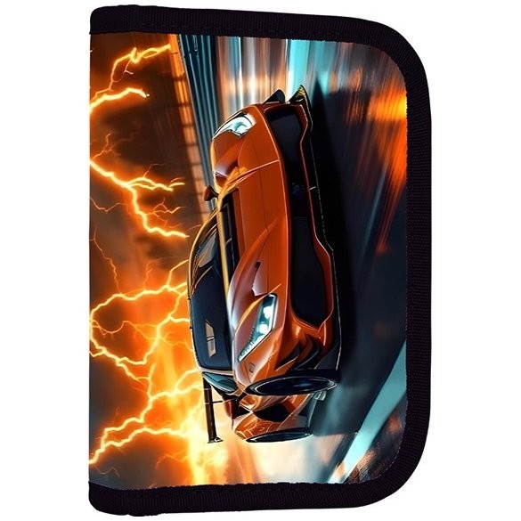 Jednopatrový školní penál Oxybag Auto 2. Penál s 2 klopama obsahuje 25 gumových poutek pro uchycení psacích potřeb. Na vnitřních klopách jsou průhledné fólie pro rozvrh hodin.