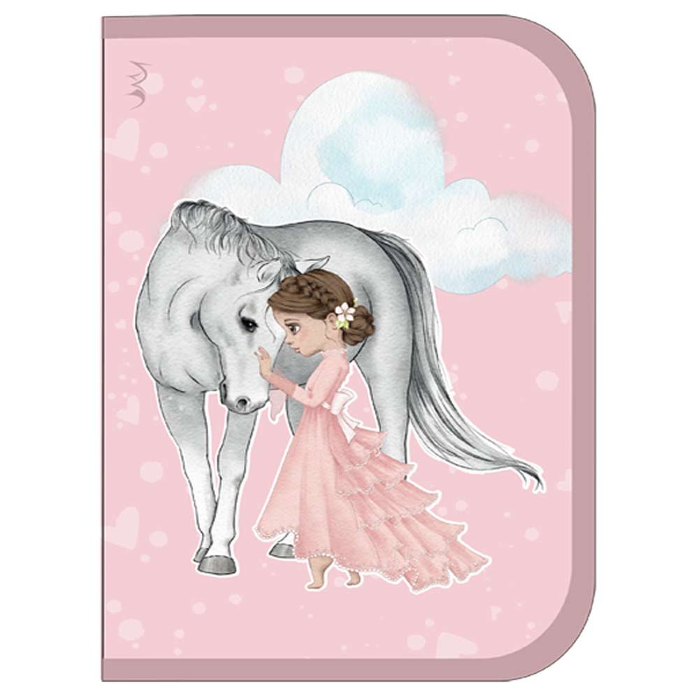 Praktický jednoduchý školní penáls koněm pro dívky značky Reybag Amazing Horse s jednou klopou, s gumovými úchyty na tužky a pera, kapsou na suchý zip vhodný na peníze, gumu a přepážkou s průhlednou fólií a rozvrhem hodin.