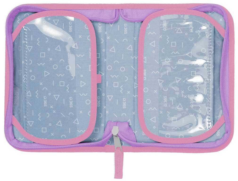 Zvětšená výška hřbetu penálu poskytuje více prostoru pro psací potřeby a drobnosti. Chlopně mají na vnější straně průhlednou kapsičku na rozvrh hodin či jiné malé dokumenty a na vnitřní straně novou síťovanou kapsičku pro uložení drobných předmětů.