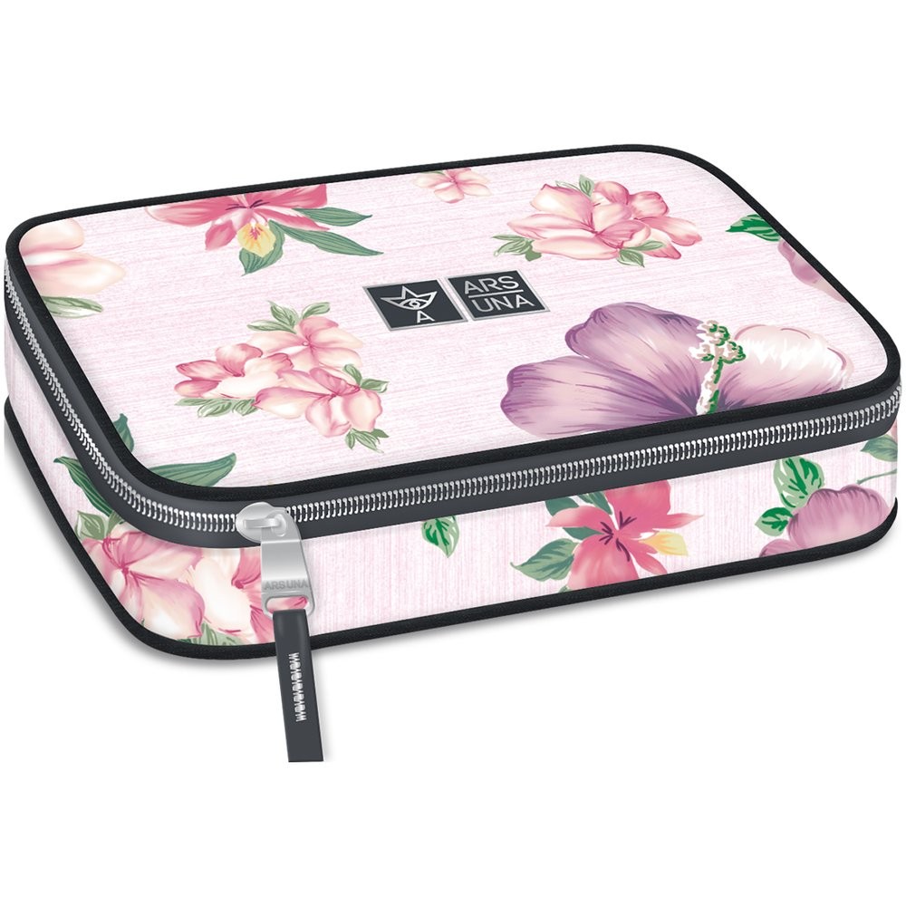 Prostorný školní penál z květinové kolekce Flowers od výrobce Ars Una s jednou zipovou kapsou a rozměrným úložným prostorem uvnitř. Pouzdro se uzavírá pomocí zipu s kovovým poutkem pro lepší manipulaci.