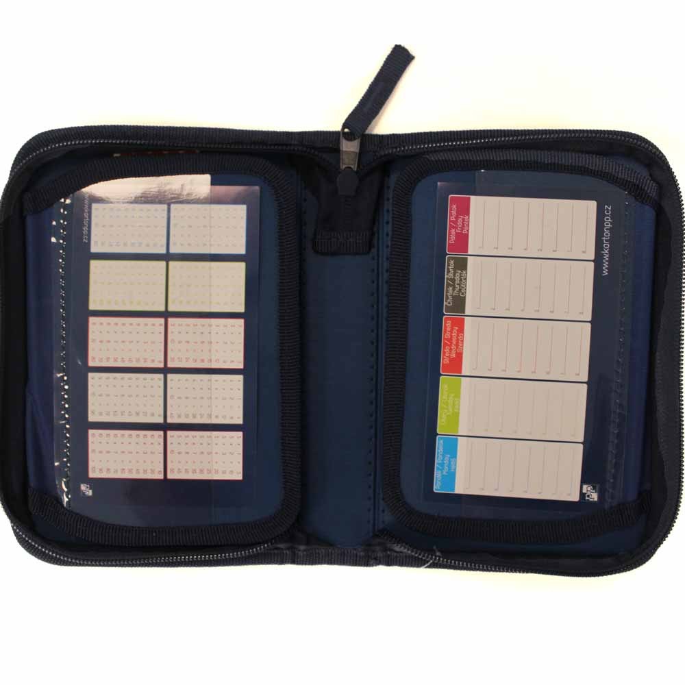 Na barevné květinové podšívce najdete 25 pružných gumových poutek na úschovu psacích potřeb a 3 širší gumová poutka na další školní pomůcky (guma, ořezávátko).