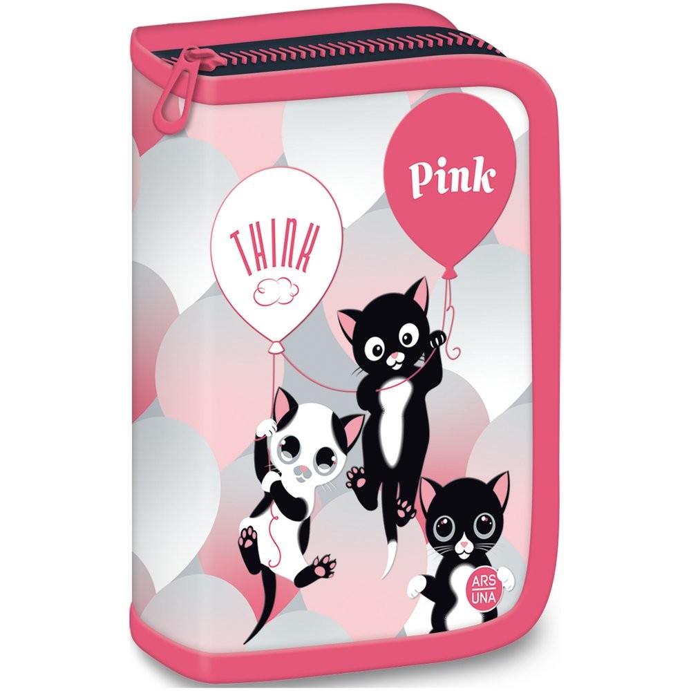 Kvalitní školní plněný penál z kolekce Think Pink pro rok 2020 od výrobce Ars Una s jednou kapsou a rozkládacím úložným prostorem uvnitř.