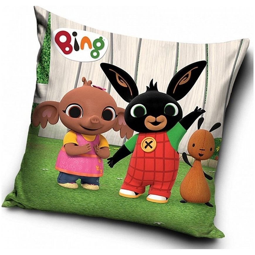 Licenční polštářek s motivem Králíčka Binga a kamarádů. Polštářek se skládá z povlaku se zipem a plněného polštářku z netkané textilie.