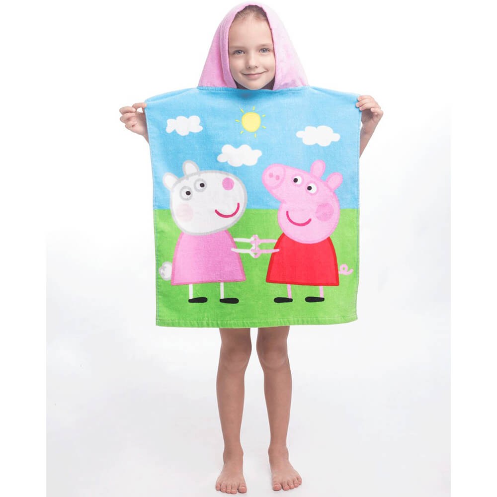 Pončo s obrázkem prasátka Peppy a jejího bratra Toma. Pončo lze využít jako ručník nebo župánek s kapucí, který využijete v bazéně nebo koupelně.
