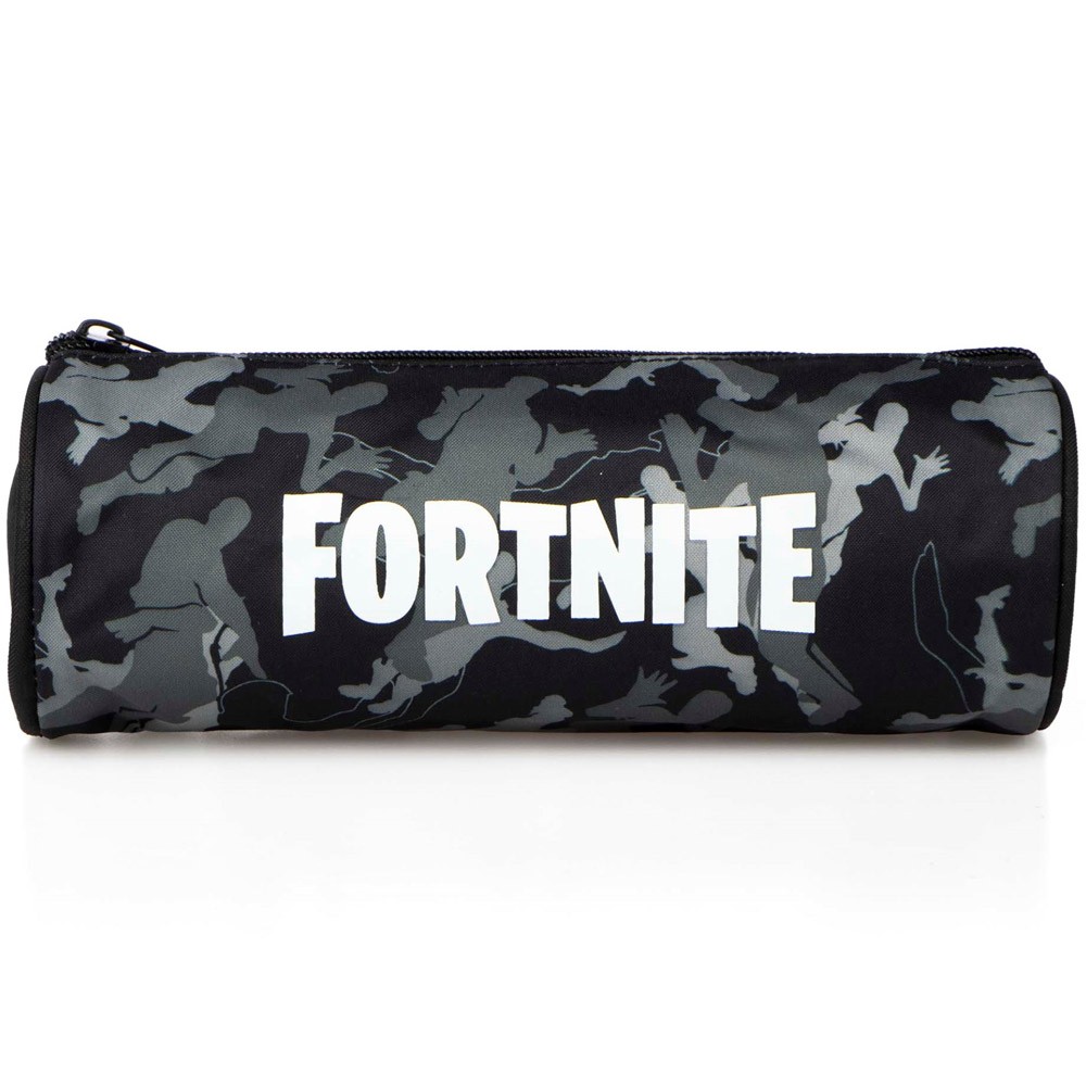 Černo-šedé oválné pouzdro pro kluky s motivem oblíbené hry Fornite na školní psací potřeby nebo jiné drobnosti.