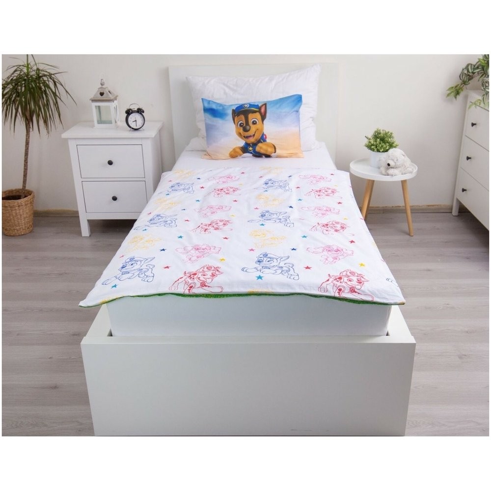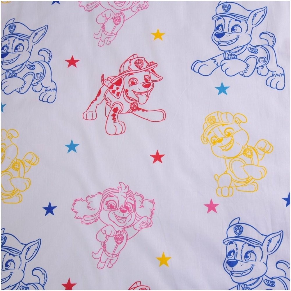 Povlečení do postýlky Paw Patrol 556 s motivem Chase, Rubble, Skye a Marshalla. Barevný design s nápisem „DUTY CALLS“ – ideální pro nejmenší fanoušky Tlapkové patroly! Rozměr 40x60, 100x135 cm.