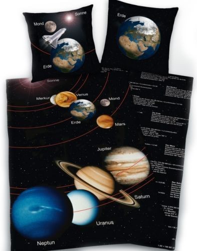 Povlečení s motivem planet naší sluneční soustavy, které potěší nejen dospělé, ale také mnoho dětí. Rozměr dětského povlečení - přikrývka 140/200 cm a polštář 70/90 cm. Povlečení je vyrobeno z čisté bavlny. Vesmír vstupuje nyní i do Vaší ložnice.