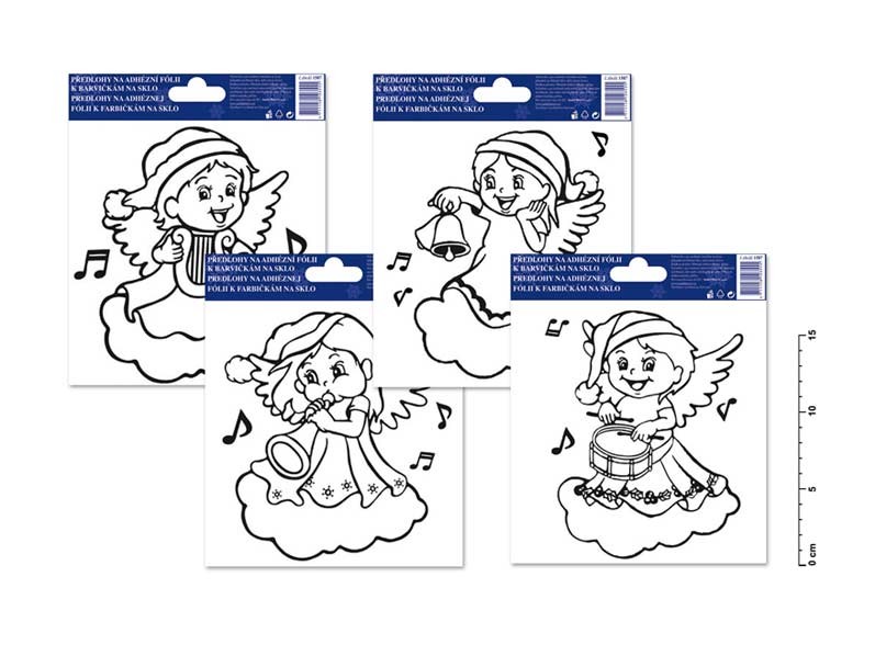 Předloha k barvám na sklovyvýšená kontura andílek 17x14cm