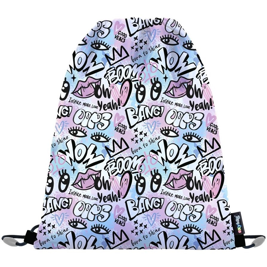 Kvalitní vak na záda Oxybag Funny Girl do školy nebo na volný čas. Uzavírá se snadno stažením šňůrek a lze ho nosit na zádech jako batůžek nebo připevnit ke školnímu batohu.