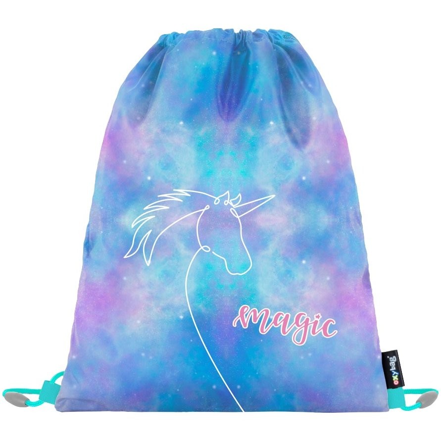 Praktický vak na záda s jednorožcem do školy nebo na volný čas. Uzavírá se snadno stažením šňůrek a lze ho nosit na zádech jako batůžek nebo připevnit ke školnímu batohu.