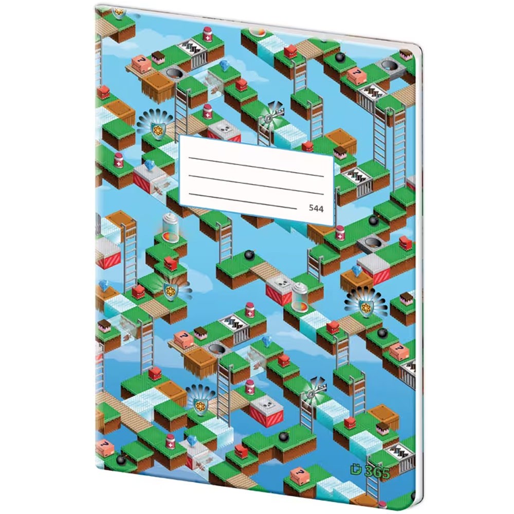 Školní sešit 544 s linkou ve formátu A5 v originálních deskách v motivu Games. Stránky jsou s okraji.