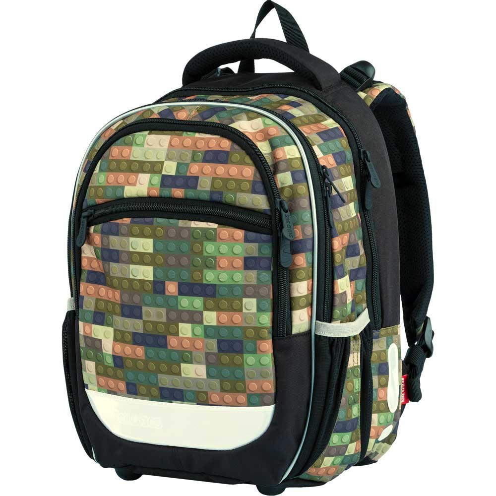Výškově nastavitelný systém zad se čtyřmi stupněmi zajistí optimální usazení batohu na zádech podle výšky dítěte. Batoh roste současně s dítětem a díky ergonomickému tvarování zad ideálně sedí na zádech. Batoh má tři hlavní komory a jednu kapsu na drobnosti. Hlavní komora batohu obsahuje oddělenou kapsu pro uložení desek na sešity. Prostřední komora má malou kapsičku na zip a přední komora síťovaný organizér uzavíratelný zipem. Boční síťované kapsy jsou určeny k přenášení láhve na pití a jsou zakončeny suchým zipem. Systém Air Flow a prodyšné polstrování umožní dobrou cirkulaci vzduchu a příjemné nošení. Polstrované nastavitelné ramenní popruhy doplňují přídavné dotahovací pásky a hrudní popruh pro zvýšení komfortu při nošení. Batoh je doplněn ze všech stran o reflexní prvky pro zvýšení bezpečnosti. Na přenášení v ruce slouží měkce polstrované madlo, pro zavěšení pak textilní poutko.