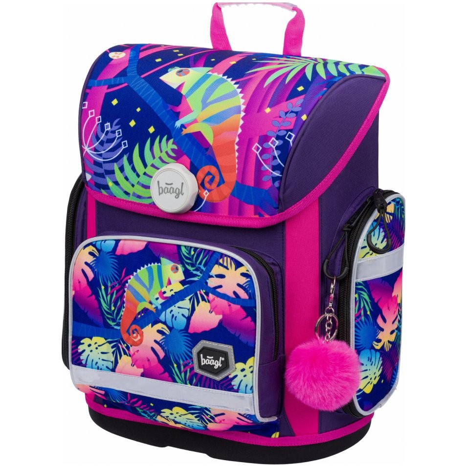 Školní aktovka Baagl Ergo s barevným obrázkem chameleona a chlupatým přívěškem je vhodná pro dívky od 1. třídy ZŠ, doporučujeme vyšším prvňáčkům. Aktovka je vhodná pro děti nad 130cm.