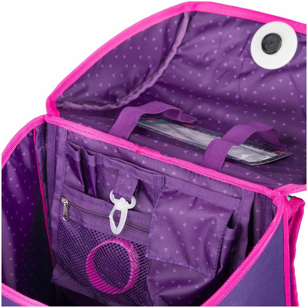 Výhodou aktovky je kvalitní magnetické zapínání Fidlock a elastický úchyt na penál z vnitřní strany klopy aktovky. Školák tak ušetří místo v aktovce, když je potřeba.
