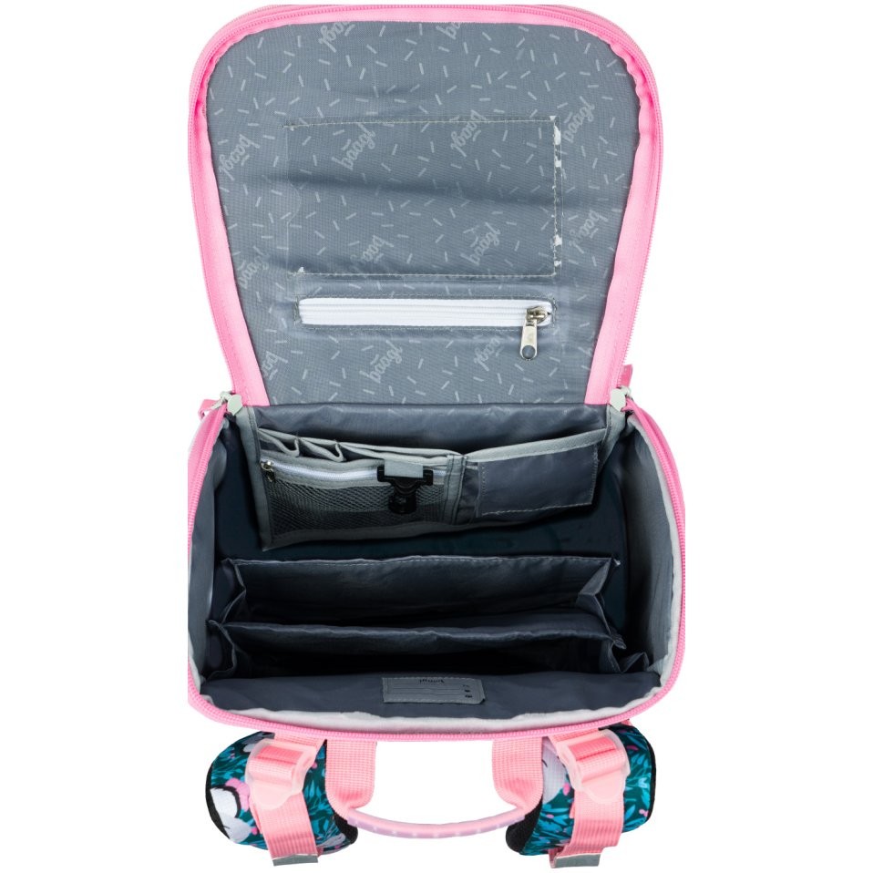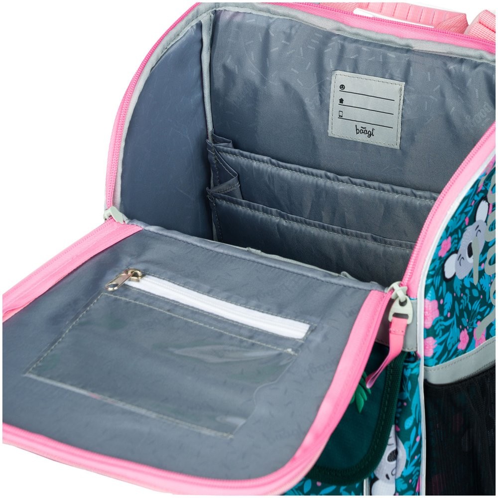 - uvnitř aktovky je průhledná kapsa s rozvrhem a vnitřní organizér umožňující rovnoměrné rozložení hmotnosti, doplněný gumičkou pro fixaci