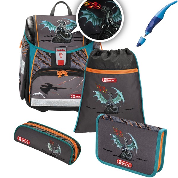 Školní aktovka Hama Step by Step Flash blikačka Drak 4-dílný set + pero Stabilo a doprava zdarma