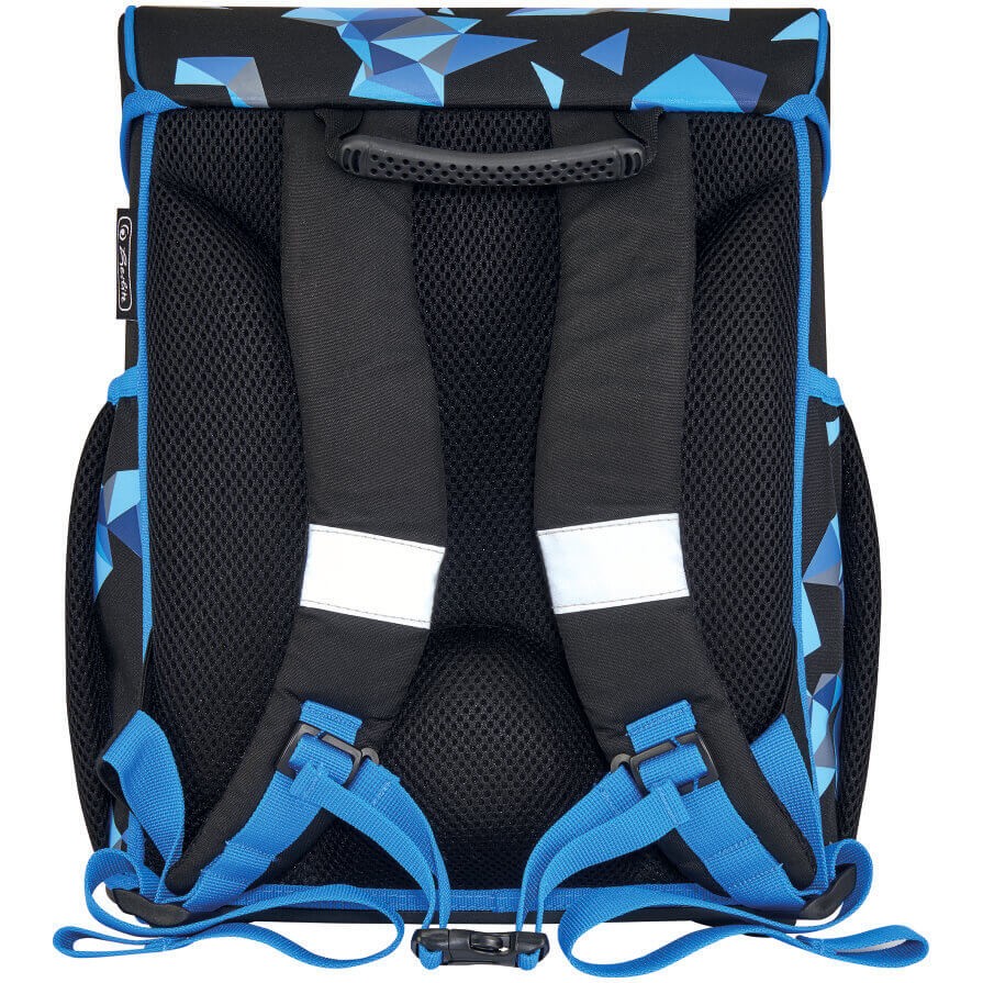 Jednokomorová školní aktovka Herlitz Loop s hezkým 3D obrázkem žraloka je vhodná i pro drobnější kluky. Velkou předností této aktovky je nízká hmotnost. Prodyšná zádová část s ergonomicky tvarovaným polstrováním zajišťuje vysoký komfort při nošení. Výškově nastavitelné anatomicky tvarované ramenní popruhy slouží pro správné usazení tašky na zádech. Integrovaný hrudní popruh napomáhá, aby taška nesklouzávala z ramen. Vnitřní část tašky je rozdělena textilní přepážkou pro stabilní uložení učebnic a sešitů. Boční kapsy jsou částečně ze síťoviny a pojmou zdravé láhve 0,5 l. Přední kapsa na zip je ideální pro uložení svačinového boxu. Pro zvýšení bezpečnosti dítěte za šera nebo nepříznivého počasí je aktovka ze všech stran opatřena reflexními prvky.