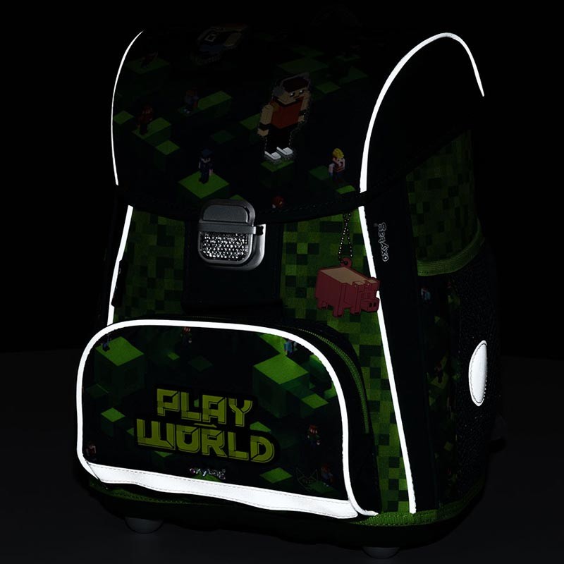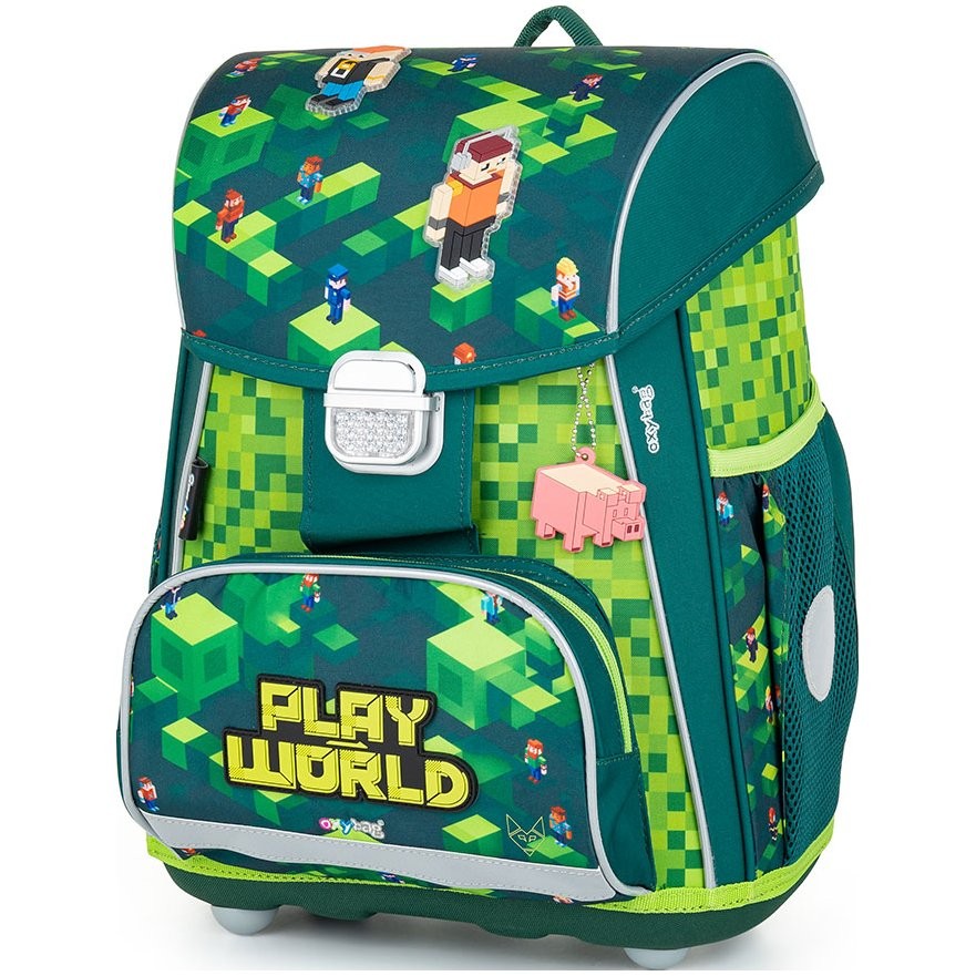 Školní aktovka s oblíbeným motivem Playworld, který je podobný oblíbenému Minecraftu, je vhodná pro středně vysoké až vyšší prvňáčky.
