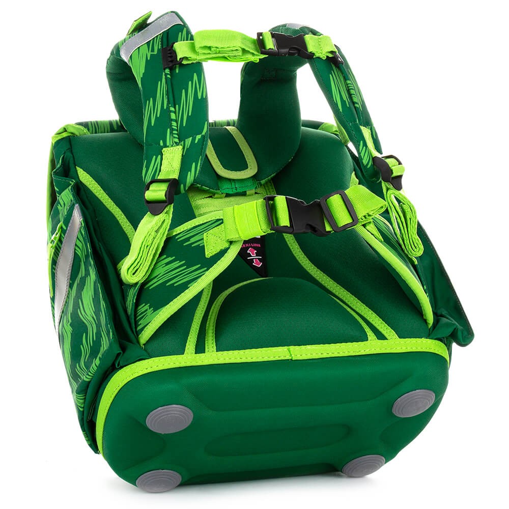 Zádová část má anatomicky tvarované, měkké a prodyšné polstrování. Délkově nastavitelné ramenní popruhy jsou ergonomicky tvarované a také velice příjemně polstrované. Jsou vybaveny přídavným stahovacím paskem v horní části, hrudní popruh je samozřejmostí. K úlevě dětským ramínkům od zátěže slouží nastavitelný bederní pás, který při používání přesměruje značnou část hmotnosti nákladu na nejstabilnější oblast dětského těla - pánev. Posuvný zádový systém Flexi Line umožňuje upravit výšku ramenních popruhů podle aktuální výšky dítěte.