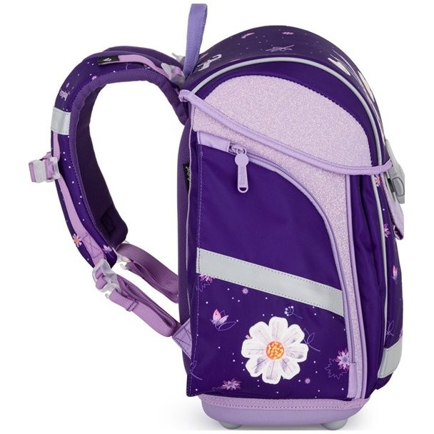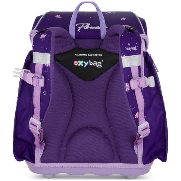 Kvalitní aktovka pro prvňáčky Oxybag řady Premium Light Flowers nabízí kvalitu, prostor na školní potřeby i odlehčenou konstrukci pro pohodlnější nošení, což ocení především ti nejmladší školáci s výškou od 121 cm. Aktovka do školy má díky odlehčenému materiálu pouhých 970 g. Polstrování je z příjemného prodyšného materiálu, široké měkčené popruhy jsou navrženy tak, aby dokonale přilnuly a rovnoměrně zatížily ramena dítěte. Pro pohodlnější nošení je aktovka dále vybavena přitažnými a hrudními popruhy. Aktovka je i navíc opatřena přidávnými háčky pro uchycení popruhů. Nechybí ani praktické reflexní prvky, jednoduché magnetické zapínání, vnitřní rozřaďovač i velké množství kapes.
