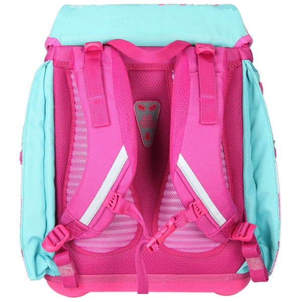 Ergonomicky tvarovaná a prodyšná zádová část snižuje zatížení zad dítěte a přispívá ke komfortu při nošení. Výškově nastavitelné ramenní popruhy jsou anatomicky tvarované a kvalitně polstrované, doplňují je přídavné dotahovací ramenní pásky pro správné usazení tašky na zádech. K tomu slouží i bederní pás. Integrovaný hrudní popruh napomáhá, aby taška nesklouzávala z ramen.