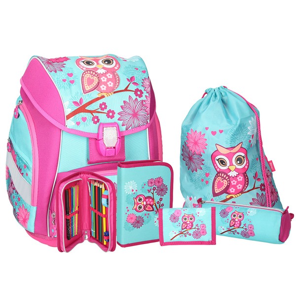 Skolní aktovka Pro light je určena pro prvňáčky, a to i ty menší, s drobnější postavou. Děti nadchne svítící LED zámek, taška jim navíc skvěle sedí na zádech. V nabídce je v 5dílném setu s vybaveným penálem, vakem, peněženkou a pouzdrem.