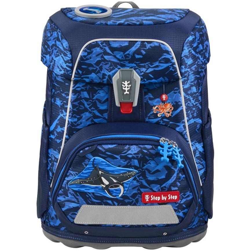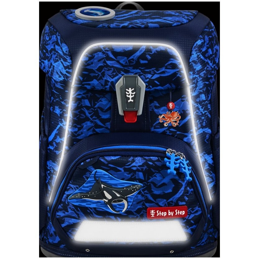 Prostorná aktovka do školy Step by Step FIT Manta Rio je vhodná pro každého chlapce. Do aktovky se vejde vše potřebné od pera až po sportovní potřeby.