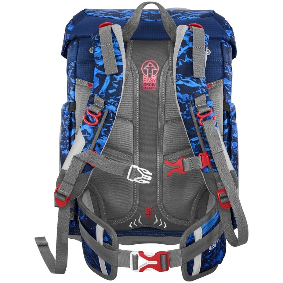 Školní taška pro prvňáčky má hmotnost pouze 990 g a je vhodná pro děti od 100 do 150 cm výšky. Aktovka má vyměnitelné obrázky MAGIC MAGS a EASY GROW SYSTEM, což znamená že taška roste s dítětem (aktovka je vhodná pro děti od 1. do 4. třídy). Ultralehký zádový panel ze skelných vláken, ergonomicky tvarovaná záda s prodyšným polstrováním a nastavitelné a ergonomické ramenní popruhy jsou u aktovky Step by Step samozřejmostí. Aktovka disponuje také dotahovacími pásky pro těsné doléhání aktovky k zádům, odnímatelným, výškově nastavitelným hrudním popruhem, úchyty na koncích ramenních popruhů a polstrovaným, odnímatelným bederním pásem s malou boční kapsičkou na zip. Přední kapsa s termoizolační vrstvou a odtokovými otvory je ideální pro uložení svačiny. Otevřené boční kapsy rostoucí směrem ven s odtokovými otvory a poutko na nošení/ zavěšení. Aktovka se zavírá na magnetický uzávěr FIDLOCK. Hlavní kapsa s vnitřní kapsou je vhodná pro těžší předměty (knížky, desky na sešity), díky gumičce v klopě je v aktovce více místa díky úspornému uložení penálu. Voděodolné pevné dno a skrytá přihrádka na AirTag. Reflexní prvky pro větší bezpečnost v silničním provozu, v šeru a ve tmě.