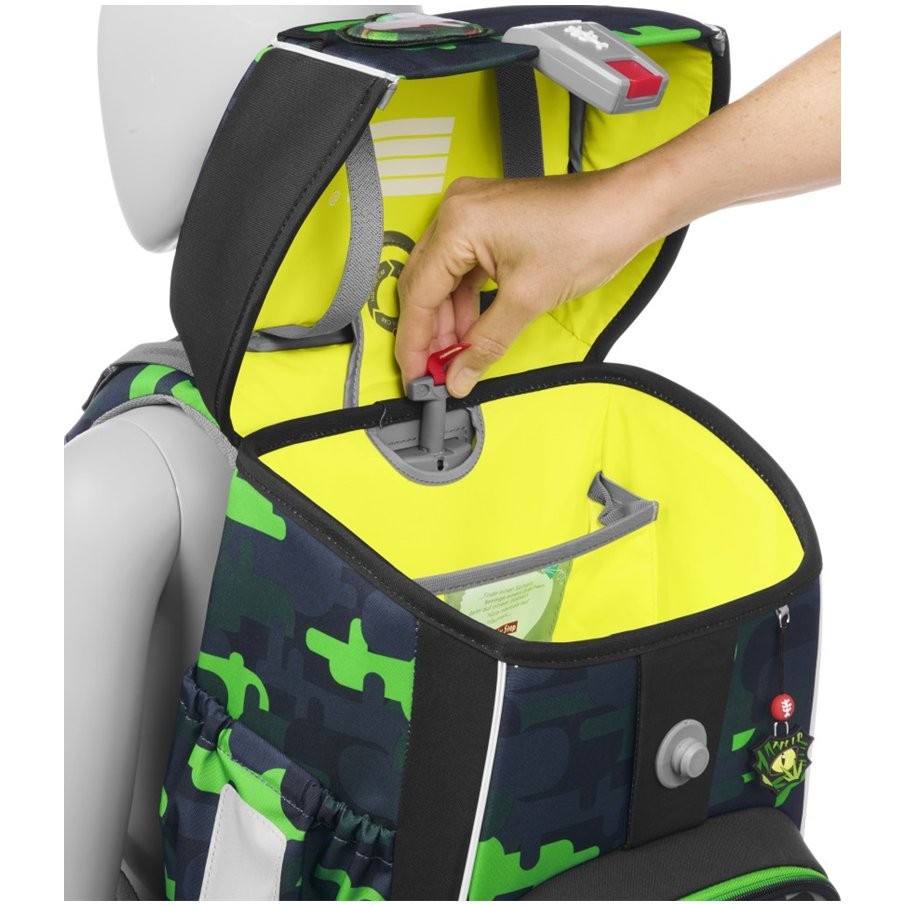 Aktovka pro prvňáčka má hmotnost 1 050 g a je vhodná pro větší děti od 120 do 170 cm výšky. Aktovka disponuje EASY GROW SYSTEMEM, který roste s dítětem (aktovka je vhodná pro děti od 1. do 4. třídy). Má ultralehký zádový panel ze skelných vláken, ergonomicky tvarovaná záda s prodyšným polstrováním a nastavitelné a ergonomické ramenní popruhy. V případě potřeby můžete aktovku upravit za pomocí dotahovacích pásků pro těsné doléhání aktovky k zádům. Školní taška má pro zdravý zad vašich dětu odnímatelný, výškově nastavitelný hrudní popruh s úchyty na konce ramenních popruhů a polstrovaný, odnímatelný bederní pás.
