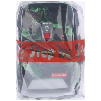 Penál: Step by Step vybavený penál obsahuje 7 silných trojhranných pastelek s nelámavými tuhami, 12 tenkých trojhranných pastelek, tužku, pravítko rovné, pravítko trojúhelníkové, guma, dvojité ořezávátko, rozvrh hodin. Penál se zapínání na zip.