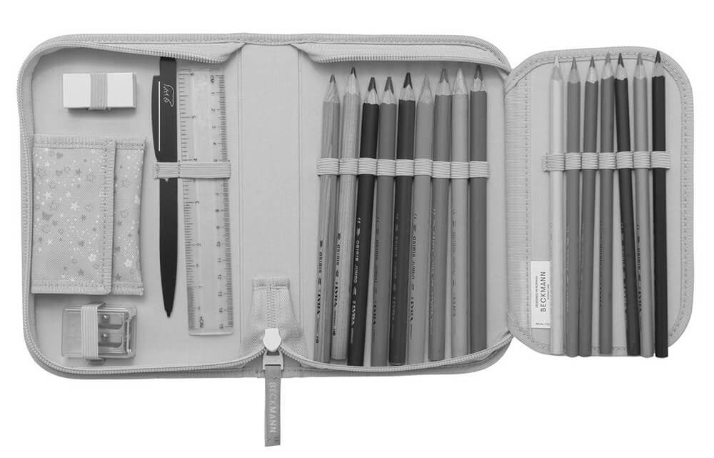 Pevné rozevírací pouzdro vysoké kvality s obrázkovou "plackou", kterou si můžete dítě podle nálady měnit. Nabízí 12 gumových poutek pro úschovu psacích potřeb a další volný prostor pro fixy, nůžky, lepící tyčinku apod.