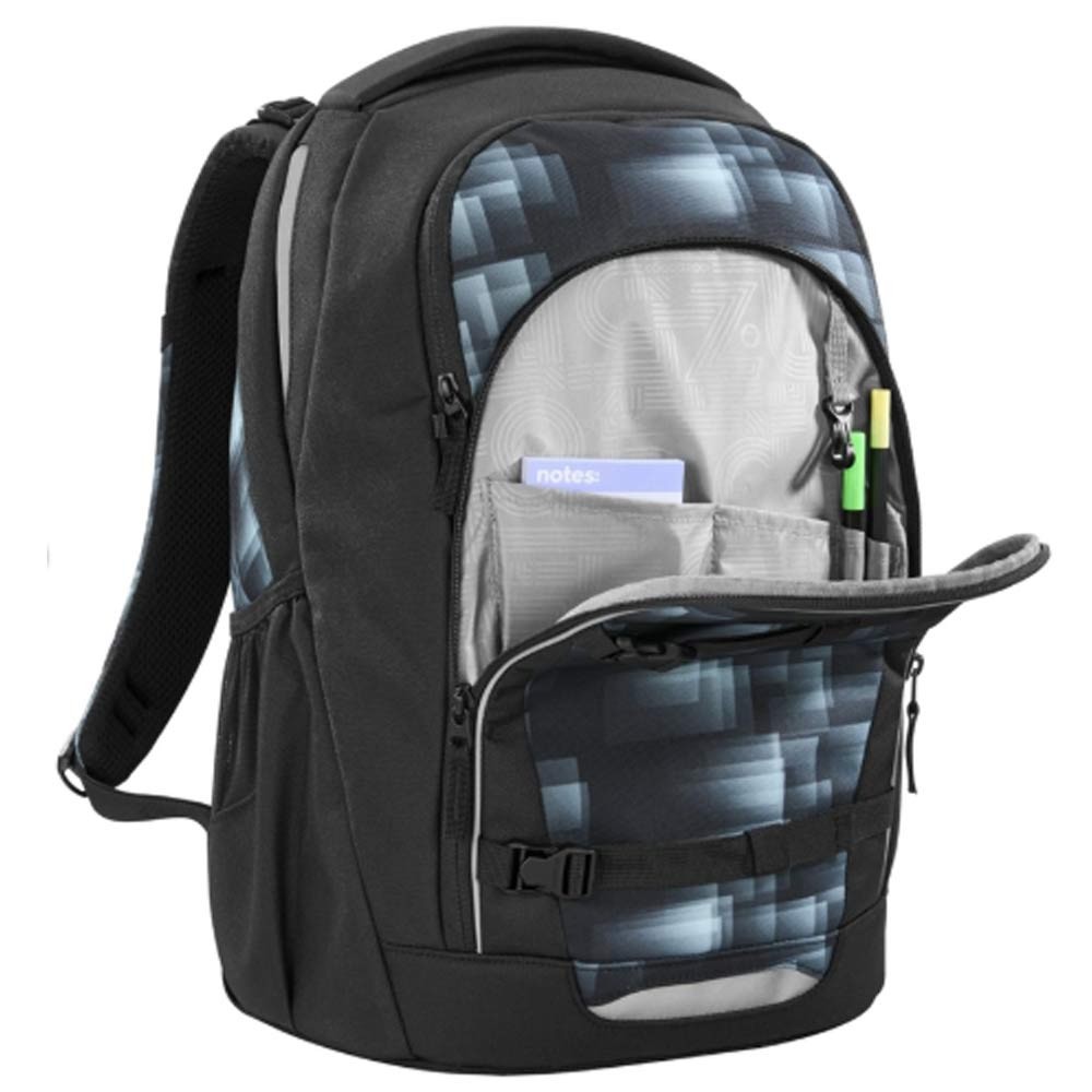 Studentský batoh má v hlavní kapse dostatek místa pro notebook 15,6“, knihy a sešity až do velikosti A4, druhá prostorná kapsa a kapsa s organizérem na doklady, psací potřeby, karabinka na klíče, svačinový box. Možnost připevnění obalu na tablet/notebook, který se v závislosti na velikosti modelu batohu připevní na poutka v přihrádce organizéru nebo pomocí klipů na obalu na kapsu pro notebook. Tašku na tablet/notebook lze připevnit na poutka v hlavní komoře. Dvě boční síťované kapsy např. pro láhev na pití. Impregnace PFC Free.
