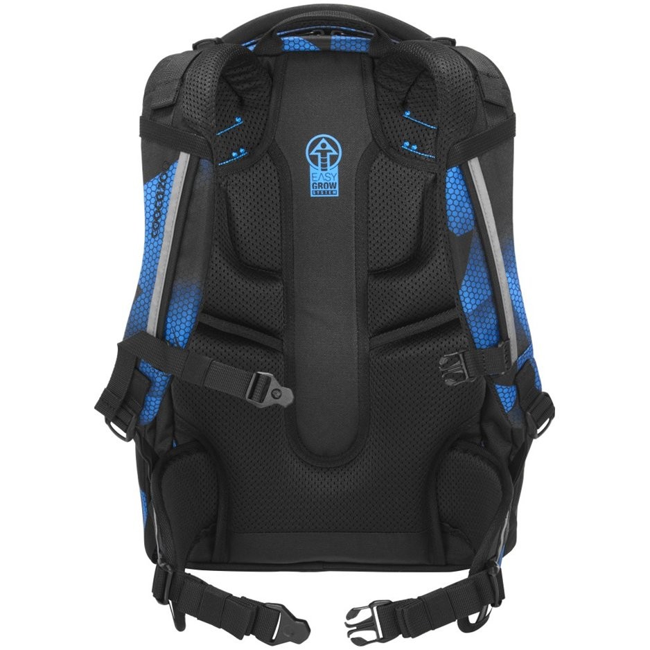 Školní batoh vhodný pro děti od 135 do 180 cm výšky nejen do školy, ale i pro sport a volný čas. Batoh má EASY GROW SYSTEM, roste s dítětem. Má plynulé nastavení ramenních popruhů pomocí otočného mechanismu uvnitř batohu přímo na zádech dítěte, polstrované ramenní popruhy ve tvaru S, dotahovací pásky pro těsné doléhání batohu k zádům, ergonomicky tvarovaná záda s měkkým prodyšným polstrováním a výškově nastavitelný hrudní popruh.