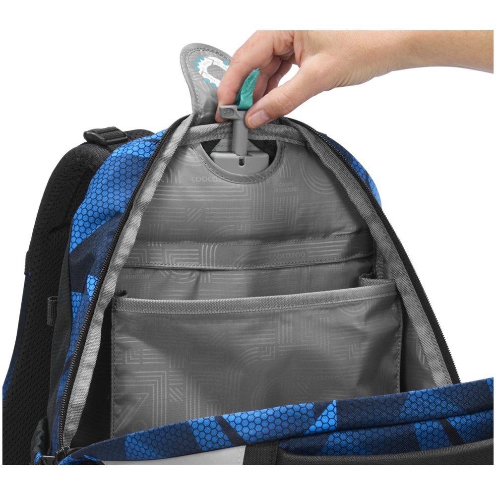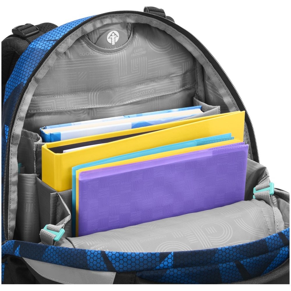 Batoh do školy má též odnímatelné stahovací řemínky pro stažení obsahu více k zádům, odnímatelné upevňovací popruhy na přední straně batohu pro připevnění bundy, helmy nebo třeba skateboardu, odnímatelný bederní pás s funkcí Pull-Forward (utažení dopředu), dvě otevřené boční kapsy rostoucí směrem ven, polstrovaná rukojeť, poutko na zavěšení a tři kapsy pro všechny školní potřeby.