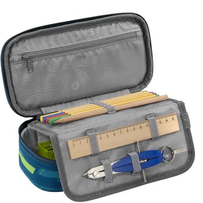 Penál pro středoškoláky Coocazoo bez vybavení pro ukládání per, tužek, pastelek, pravítka, úhloměru, gumy a dalších školních potřeb.