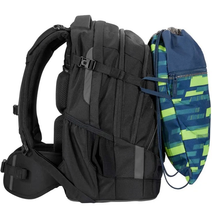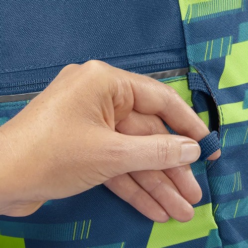 - 2 upevňovací pásky na přední straně batohu pro upevnění např. skateboardu, bundy, helmy nebo reflexních pásků coocazoo Neon pull over