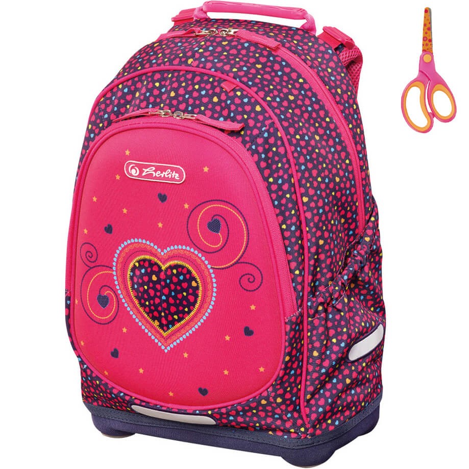 Školní batoh Herlitz Bliss Růžové srdce + nůžky zdarma