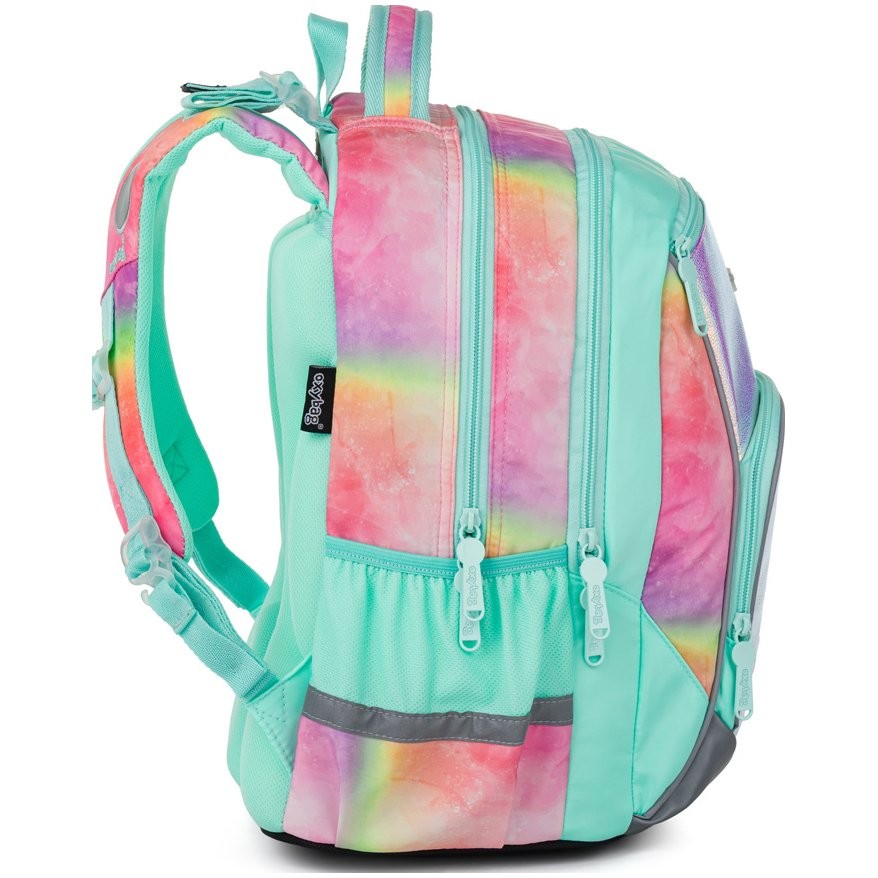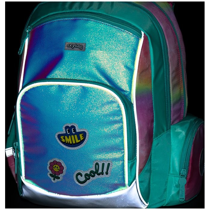 Batoh pro prvňáčky OXY GO Magic zaujme moderním designem a promyšlenou funkčností. Školní batoh je ideální pro děti od 1. do 3. třídy vysoké od 125 cm. Má anatomicky tvarovaná, prodyšná záda a nastavitelné ramenní popruhy pro pohodlné nošení. Školní taška má přidané háčky umožňují uchycení dlouhých popruhů. Vnitřní kapsy nabízí dostatek místa na učebnice, sešity i další potřeby, pevné nepromokavé dno chrání obsah před ušpiněním a protečením. Boční kapsy, jedna na zip a jedna otevřená, slouží např. na láhev. Reflexní prvky zajišťují bezpečnost.
