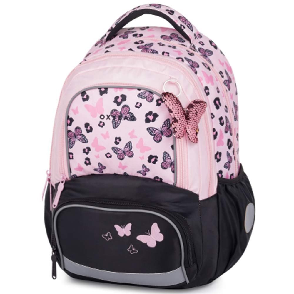 Školní batoh OXY NEXT Butterfly pink a plastový box na sešity zdarma