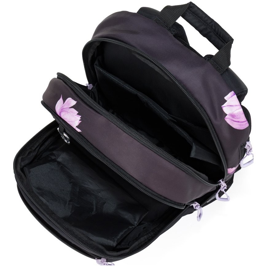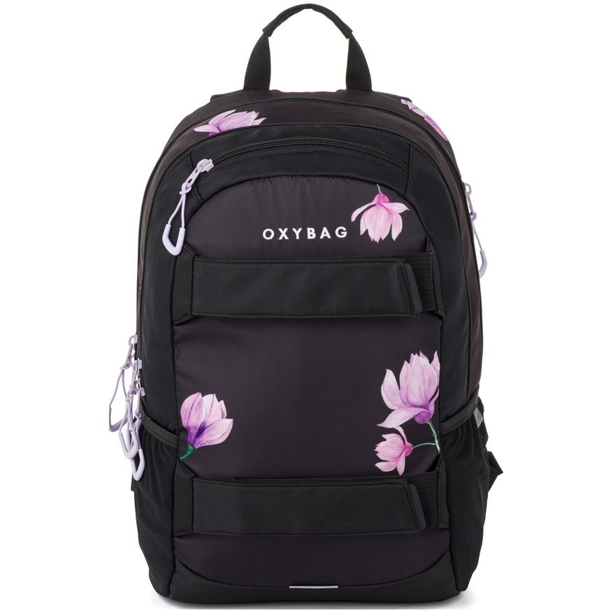 Školní set batohu Flowers a studentské etue. Studentský i volnočasový studentský batoh řady OXY SPORT vyniká ergonomicky tvarovanými zády, nastavitelnými polstrovanými ramenními popruhy a hrudním popruhem, díky kterým se pohodlně nosí. Batoh se skládá ze dvou hlavních komor a jedné menší přední kapsičky opatřenými pevnými zipy a praktickými poutky. Uvnitř batohu je vyztužená kapsa na notebook, karabina na klíče, menší kapsa na drobnosti a skrytá kapsa na zádech. Nechybí také boční kapsa na lahev na pití a řada reflexních prvků, díky kterým je batoh lépe viditelný. Batoh je ideální jak pro školáky na druhém stupni tak i pro volnočasové aktivity studentů a dospělých.