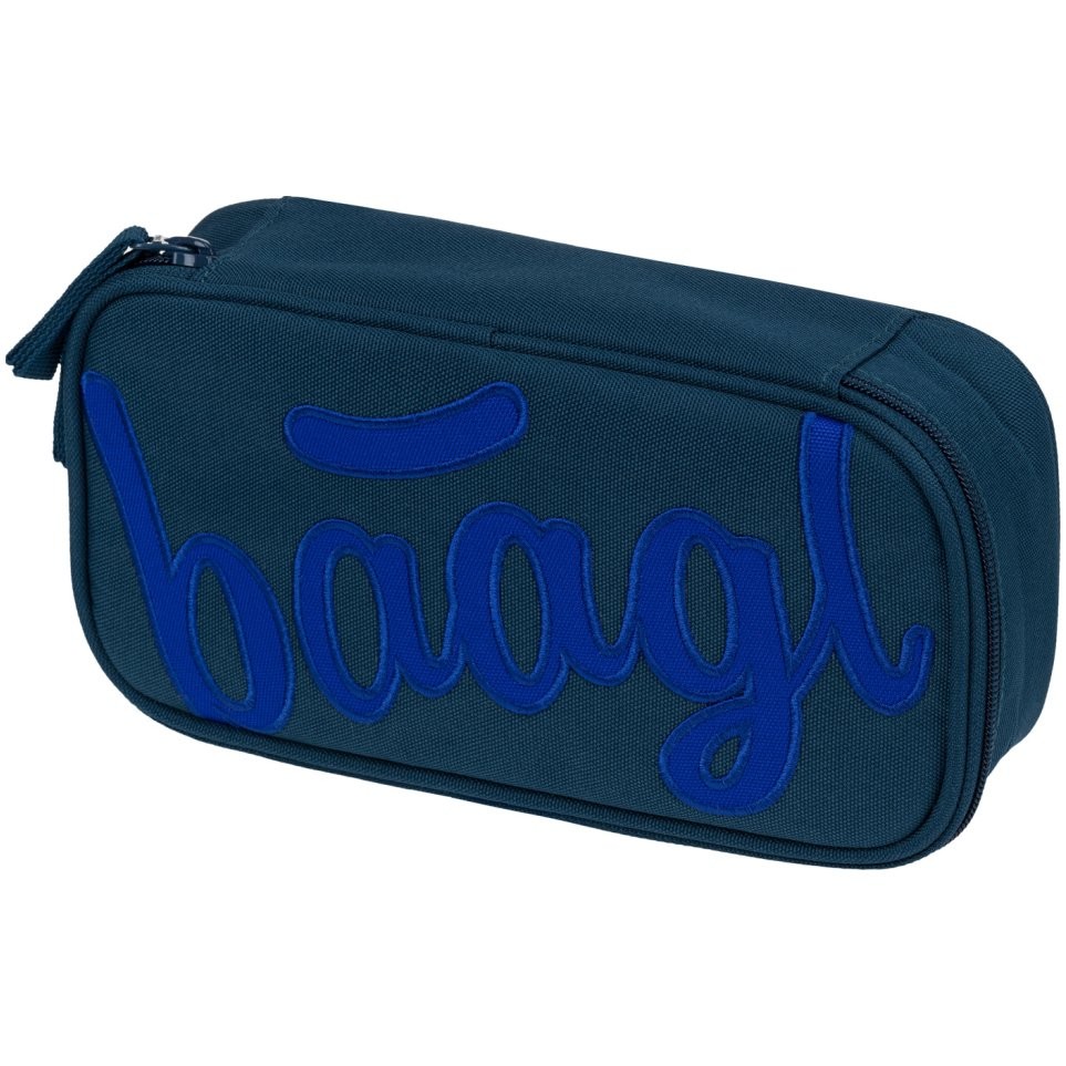 Školní set Baagl Core Logo modrý - ergonomický batoh, studentský penál, ledvinku, vak na záda a obal na notebook: