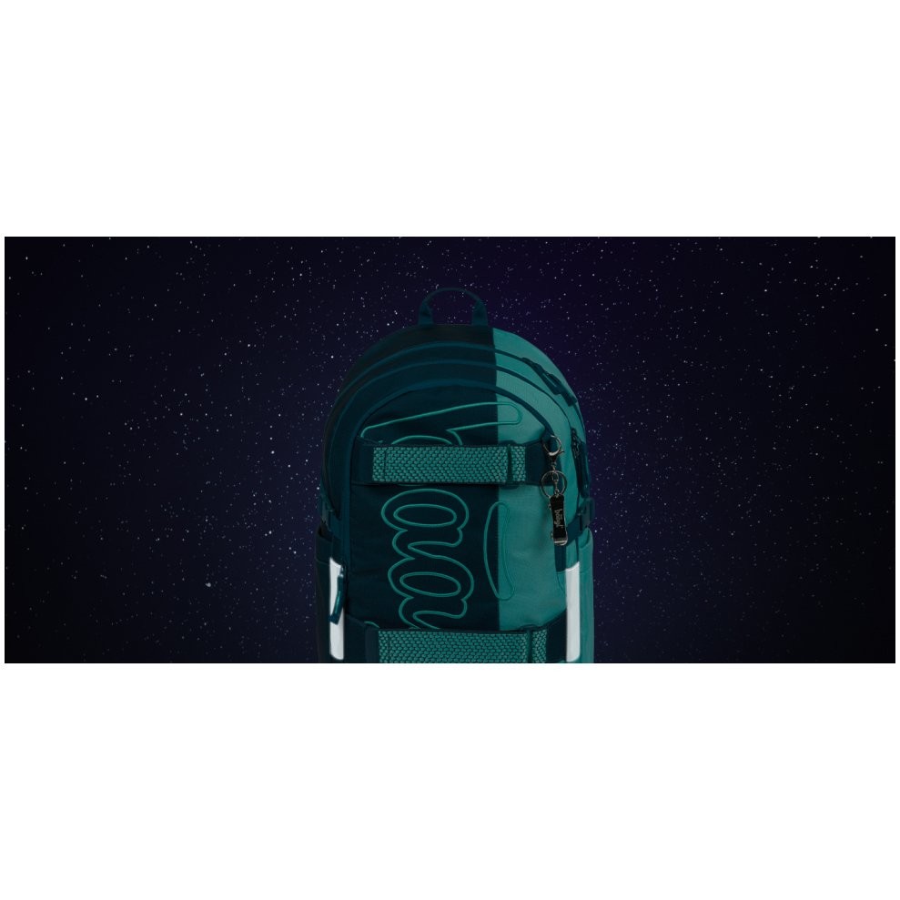 Studentský batoh Baagl, model Skate Petrol - třídílný set tvoří batoh, penál, a sportovní taška jednotného motivu.