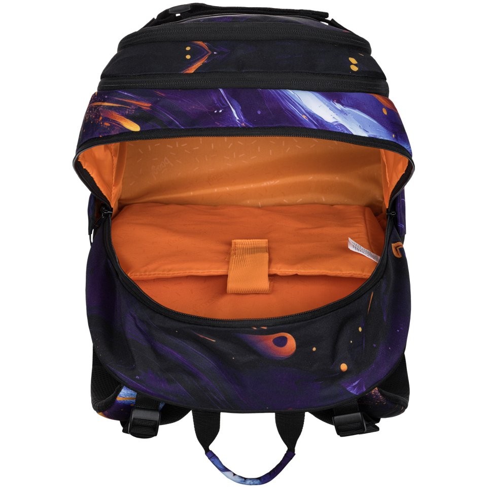 - Anatomicky tvarovaná záda s výztuží v oblasti beder a plně nastavitelné kompresní popruhy umožňují optimální přizpůsobení postavě.