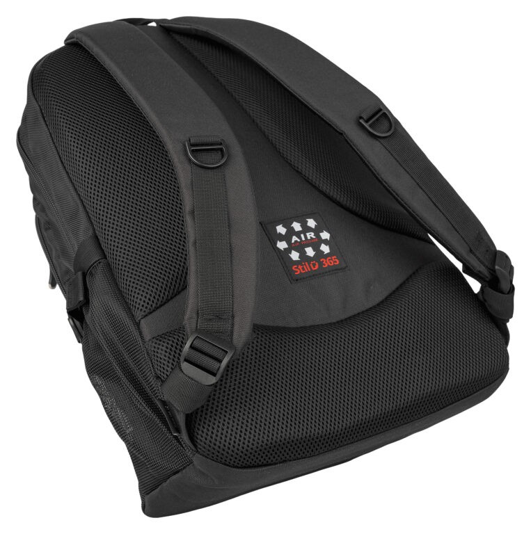 - ZÁDOVÝ SYSTÉM – síťovaný zádový panel, prodyšný a pohodlný, chrání páteř a ulevuje od tlaku způsobeného váhou.