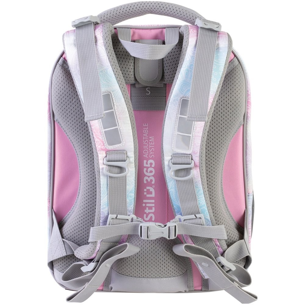 Výškově nastavitelný systém zad se čtyřmi stupněmi zajistí optimální usazení batohu na zádech podle výšky dítěte. Batoh roste současně s dítětem a díky ergonomickému tvarování zad ideálně sedí na zádech.