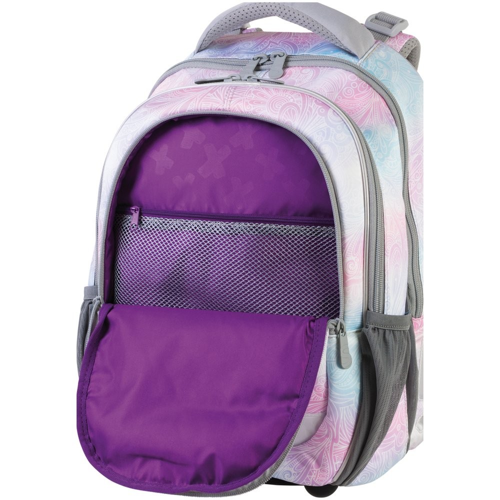 Tříkomorový školní batoh Junior Rainbow s jemnou kombinací barev je vhodný od 1. - 4. třídy ZŠ.