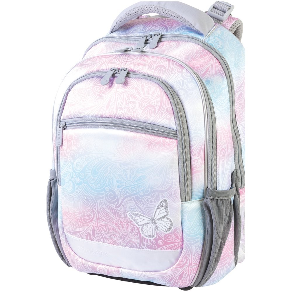Batoh má tři hlavní komory a jednu kapsu na drobnosti. Hlavní komora batohu obsahuje oddělenou kapsu pro uložení desek na sešity. Prostřední komora má malou kapsičku na zip a přední komora síťovaný organizér uzavíratelný zipem. Boční síťované kapsy jsou určeny k přenášení láhve na pití a jsou zakončeny suchým zipem.