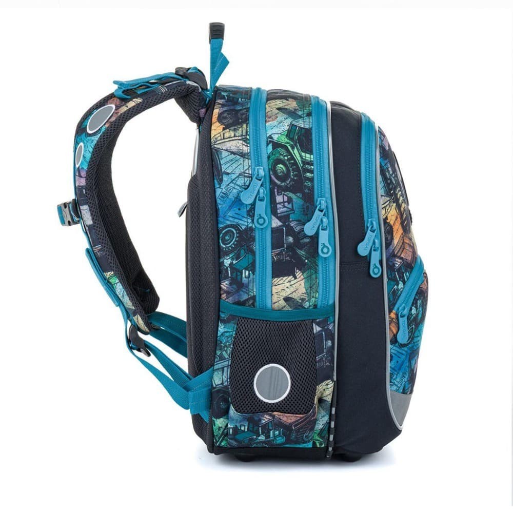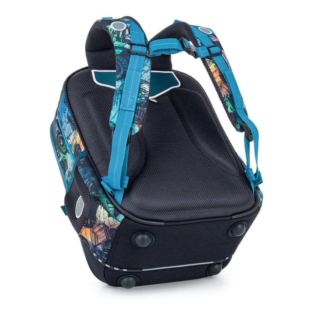Spodní část batohu je vyrobená z odolného materiálu TOPDURA, který chrání batoh před oděrem a pomáhá mu držet tvar i při každodenním školním používání.
