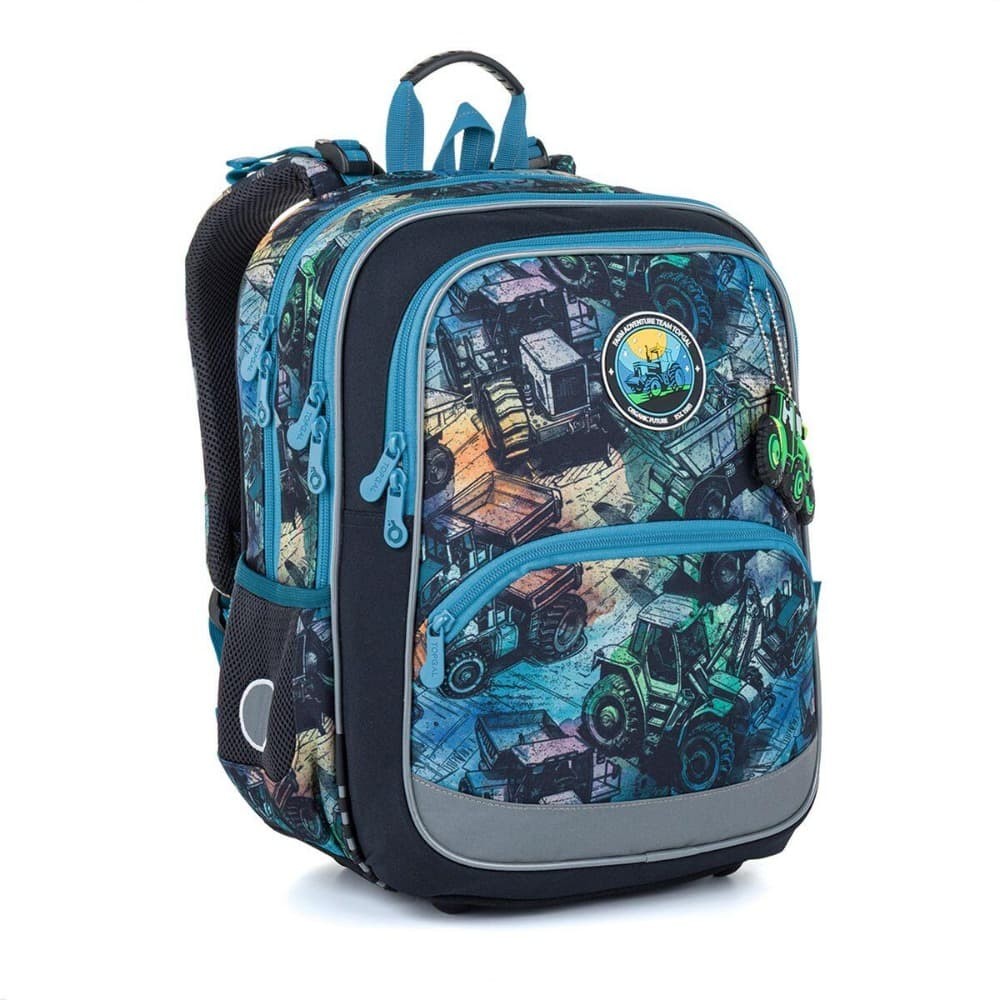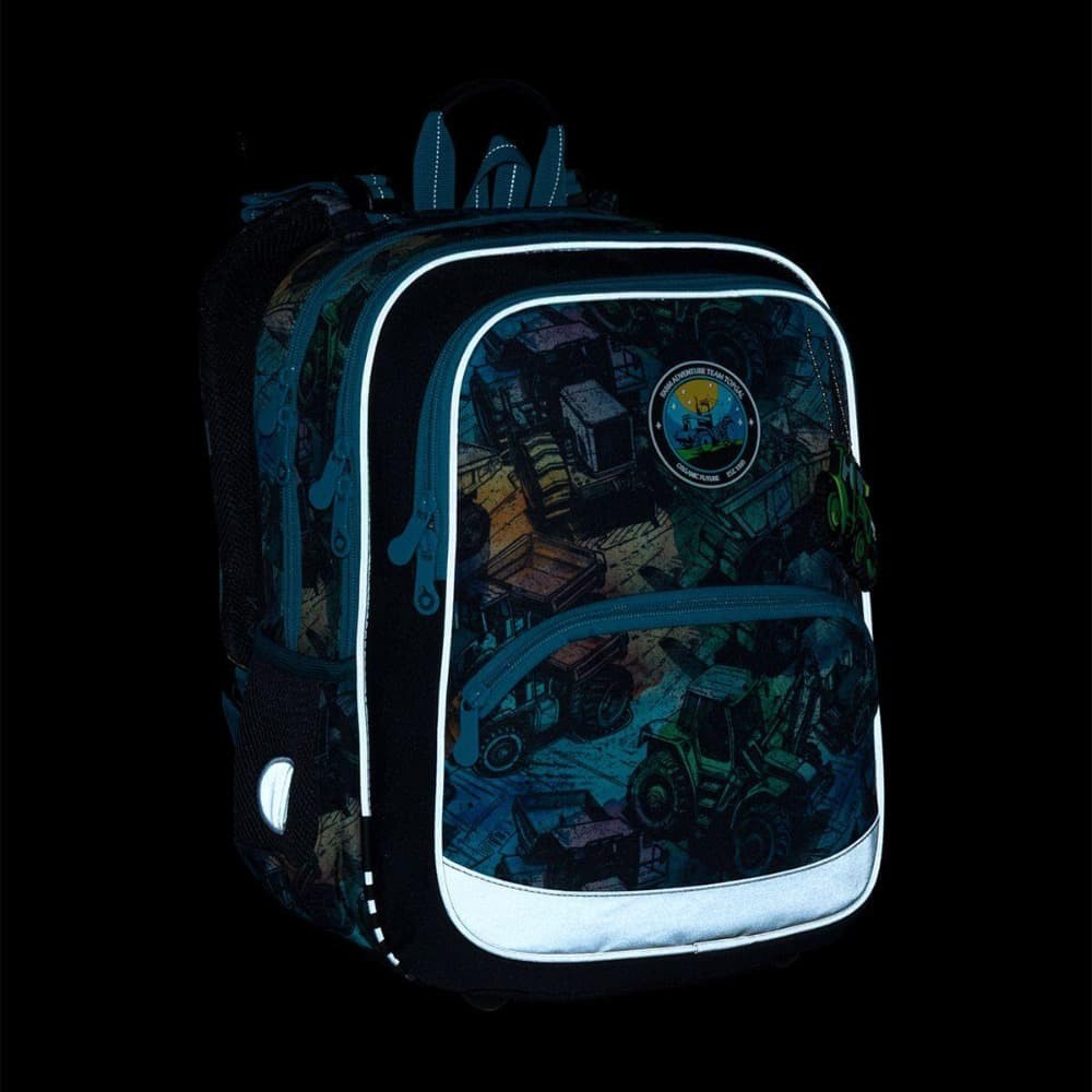 Školní batoh pro děti od 115 cm a ideální pro období od 1. do 3. třídy. Barevný motiv stavebních strojů zaujme malé školáky a promění každý školní den v nové dobrodružství. Batoh má pevná, ergonomicky tvarovaná záda a měkce polstrované ramenní popruhy, které se snadno přizpůsobí drobnější postavě dítěte. Výškově nastavitelná hrudní přezka pomáhá udržet batoh správně usazený na zádech a zvyšuje pohodlí při nošení.
